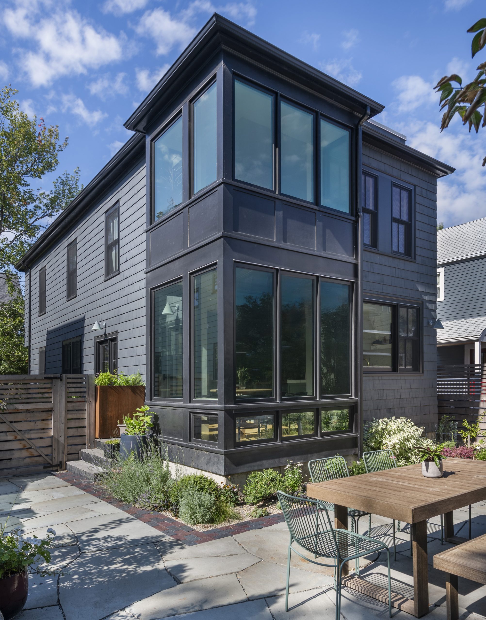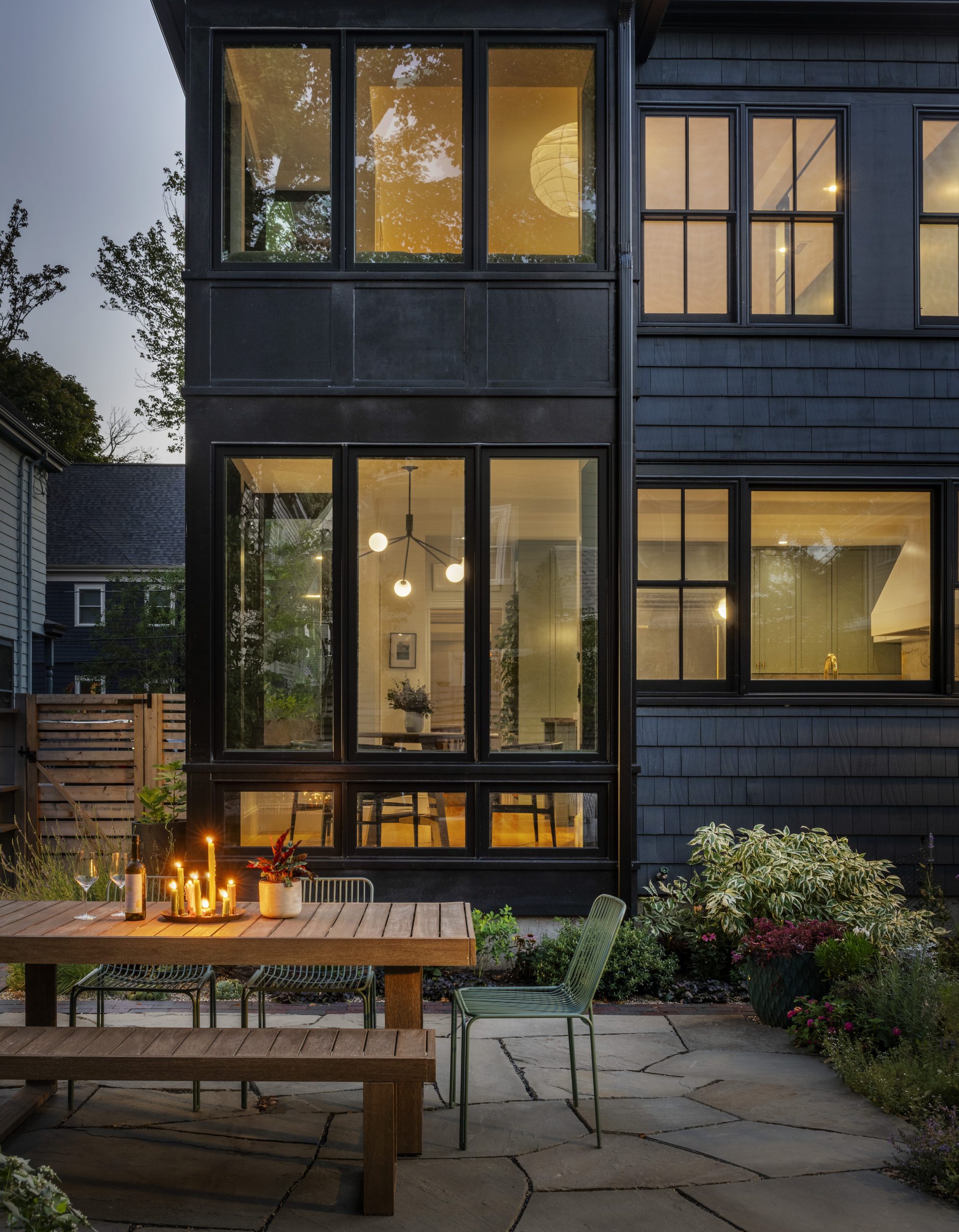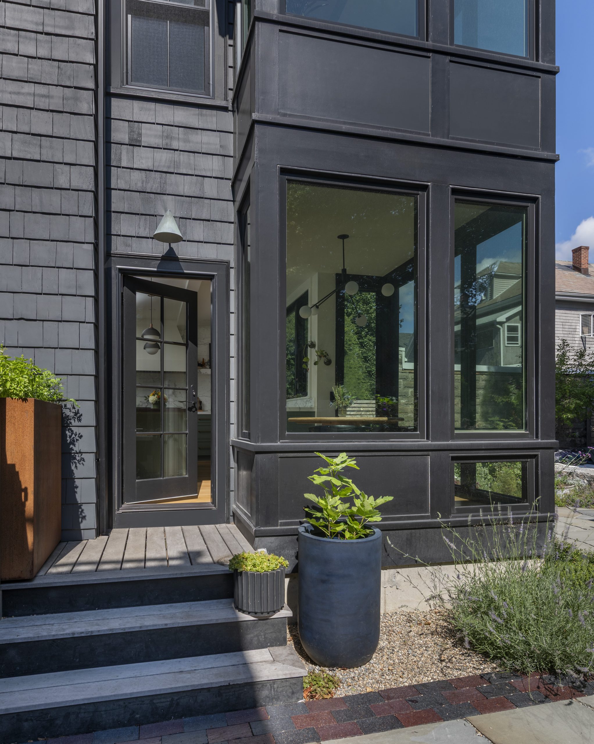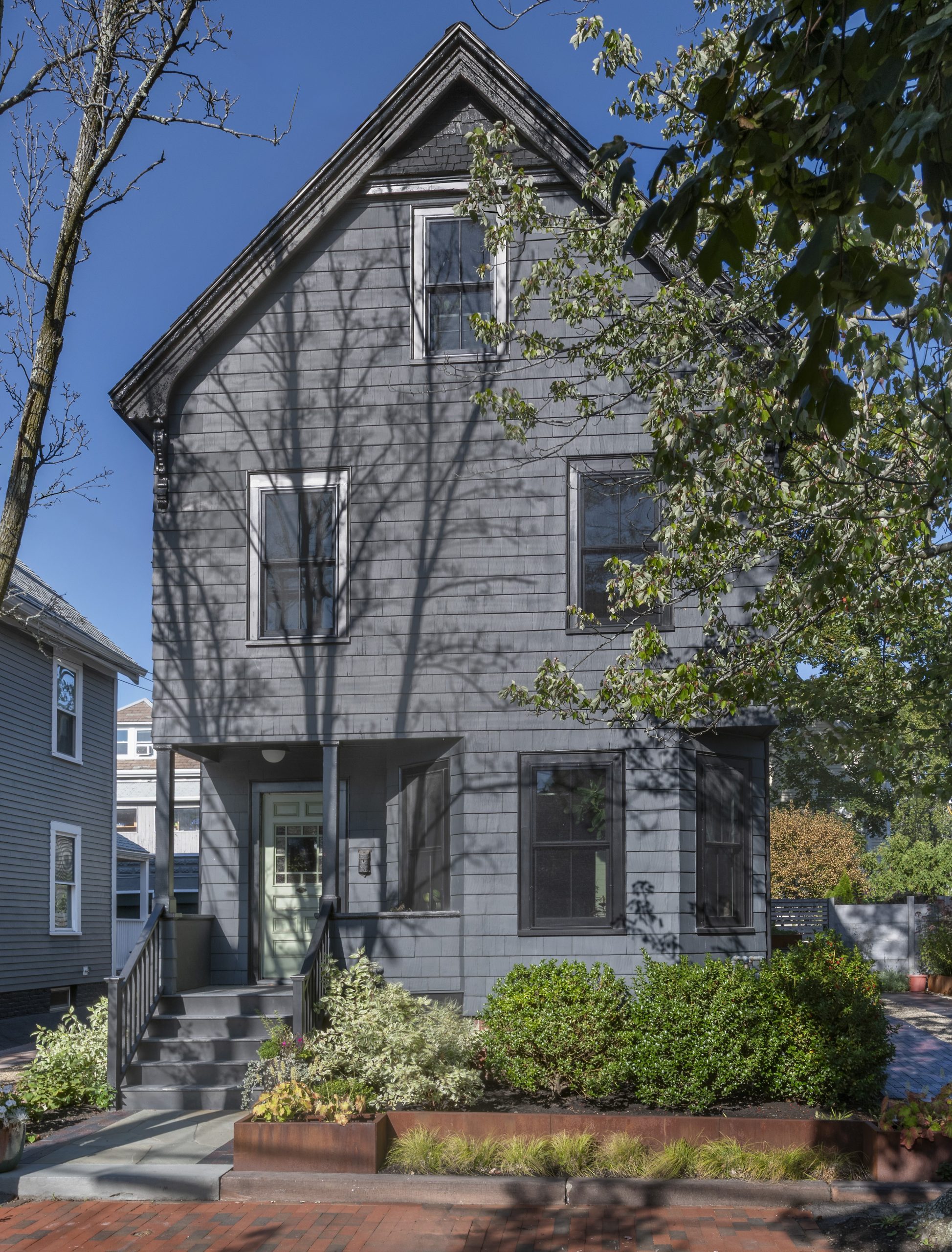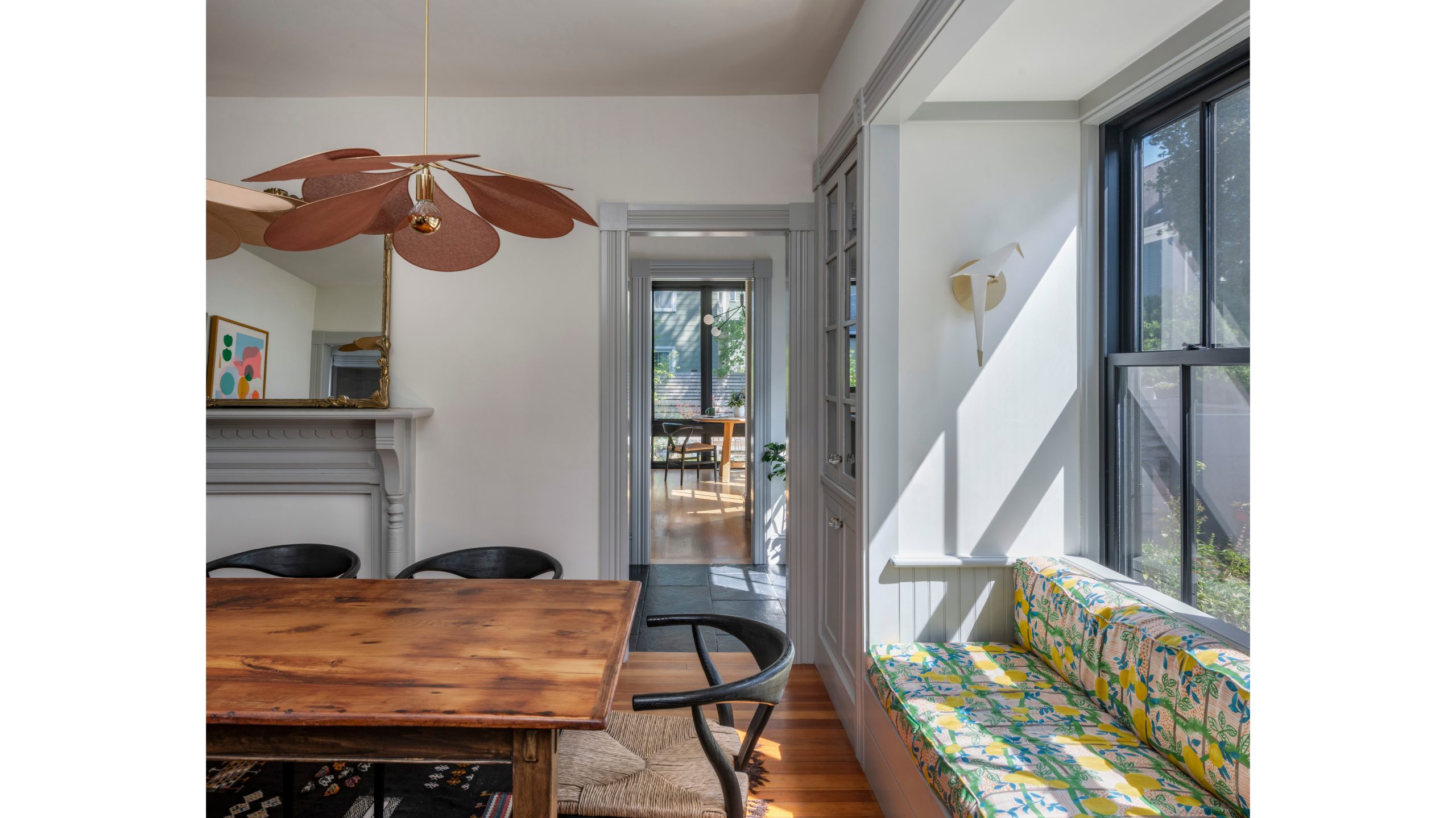 Our clients – a professional chef and a lawyer, and their two dogs – had lived in this three-story Victorian that straddles the Cambridge and Somerville line for several years before deciding to renovate. Their concerns were similar to many of our clients — the kitchen was small and cut off from the rest of the house, the entries (both front and back) were cramped and lacked storage, as did the primary bedroom and bathrooms. And the laundry was in the unfinished basement. A relatively small extension off the back of the house made space for a new mudroom with extensive storage, a half bath, and a large kitchen with breakfast area, specifically designed around the needs of our professional chef client. Upstairs, the new addition allowed a small bedroom and bathroom to be transformed into a new primary suite, and a laundry area was added on the 2nd floor. Another bedroom was turned into a home office, while the third remained available as a guest bedroom. Although not part of the original scope, CTA saw an opportunity up in the attic, where clearing out a couple of closets created a large light filled sitting room for TV and guests.